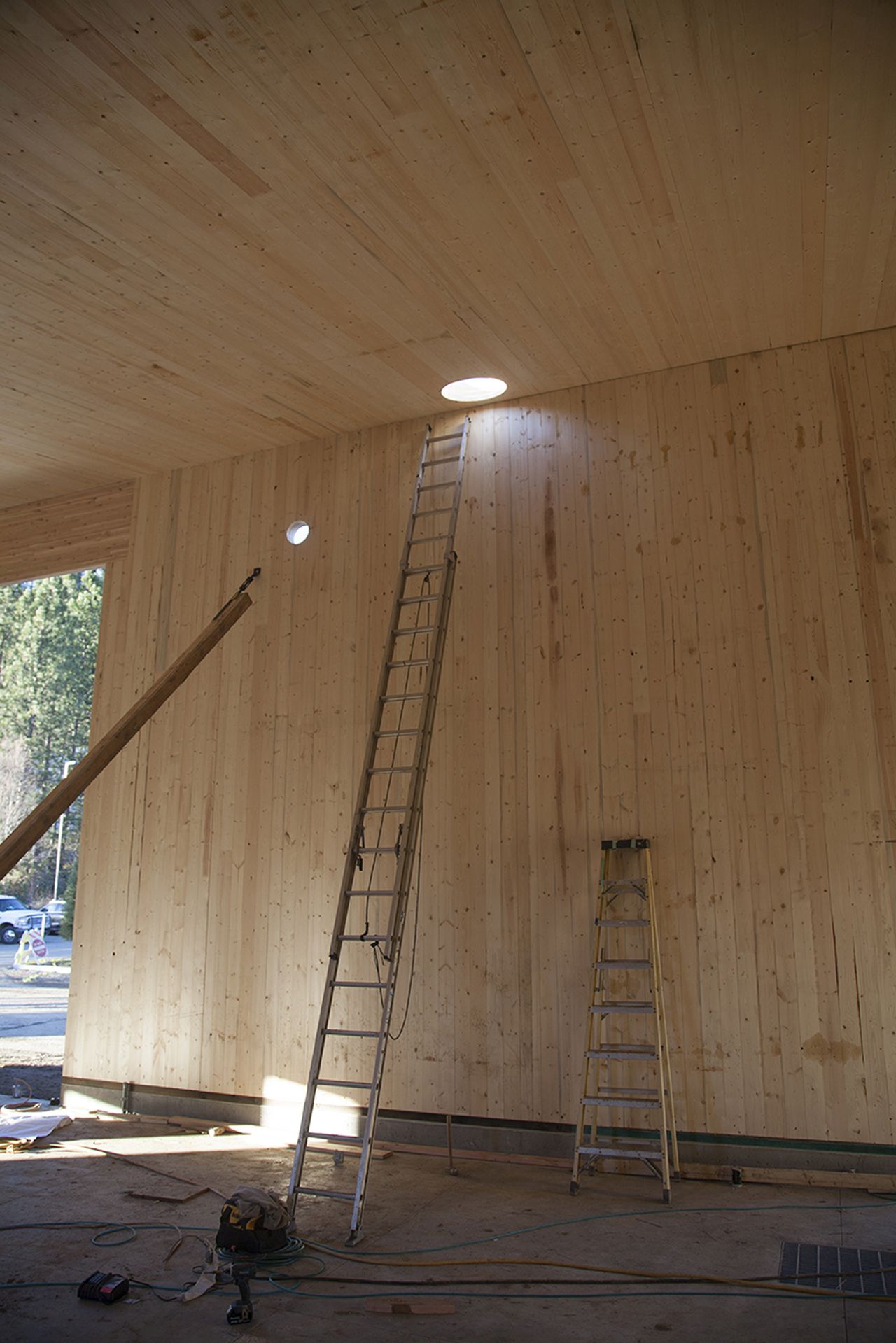 This project is California’s first fully cross-laminated timber (CLT) building: a Biomass Boiler Facility in Plumas County that provides heat and power to the nearby Health and Human Services campus. Built from large prefabricated CLT panels, the structure was erected in a single day, showcasing mass timber’s efficiency and precision. The system couples a biomass boiler with a small-scale power generator, converting organic waste into energy. Exposed CLT surfaces—inside and beneath the roof eaves—highlight the building’s material honesty and its role as a sustainable, first-of-its-kind prototype in California.