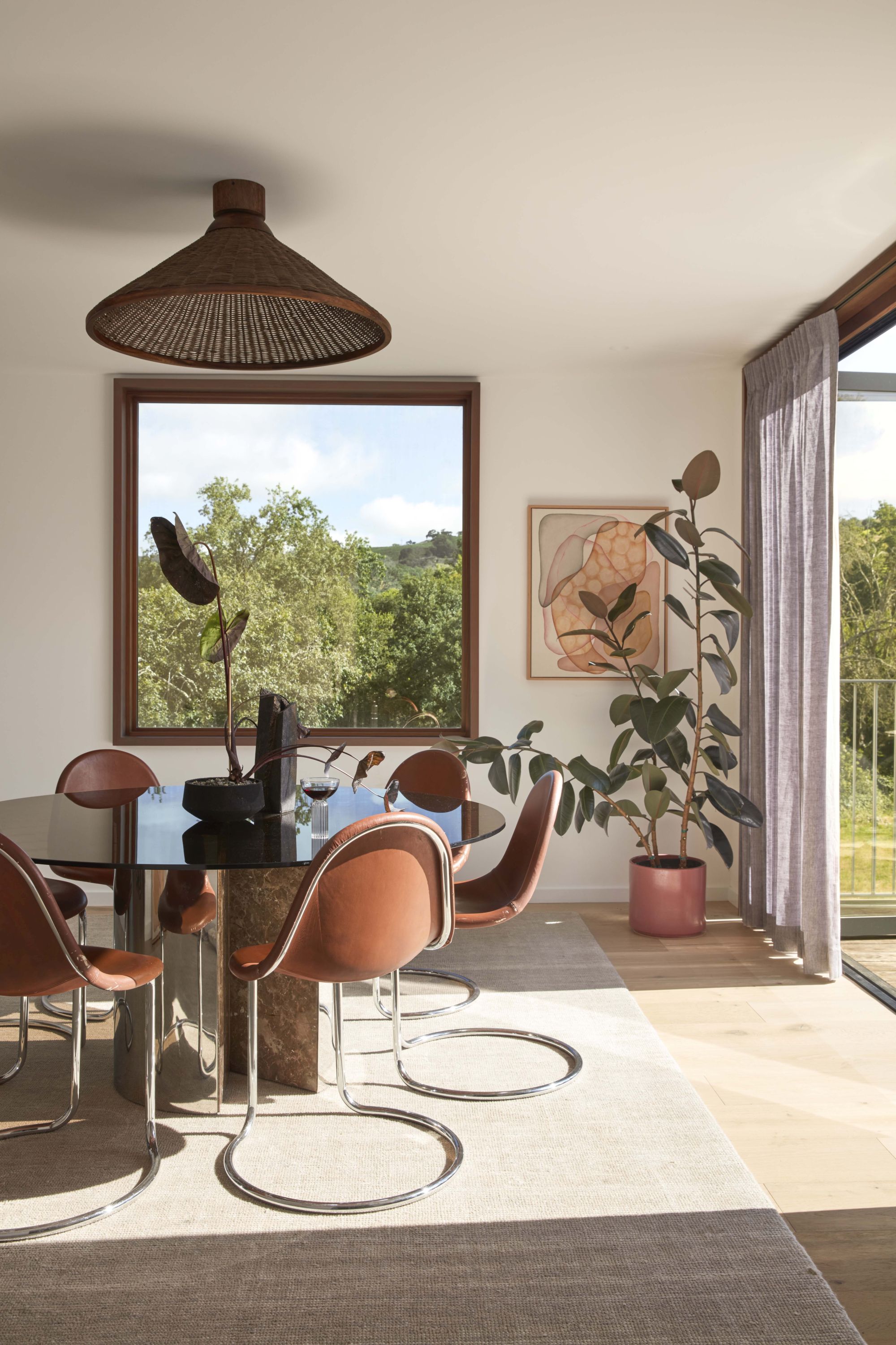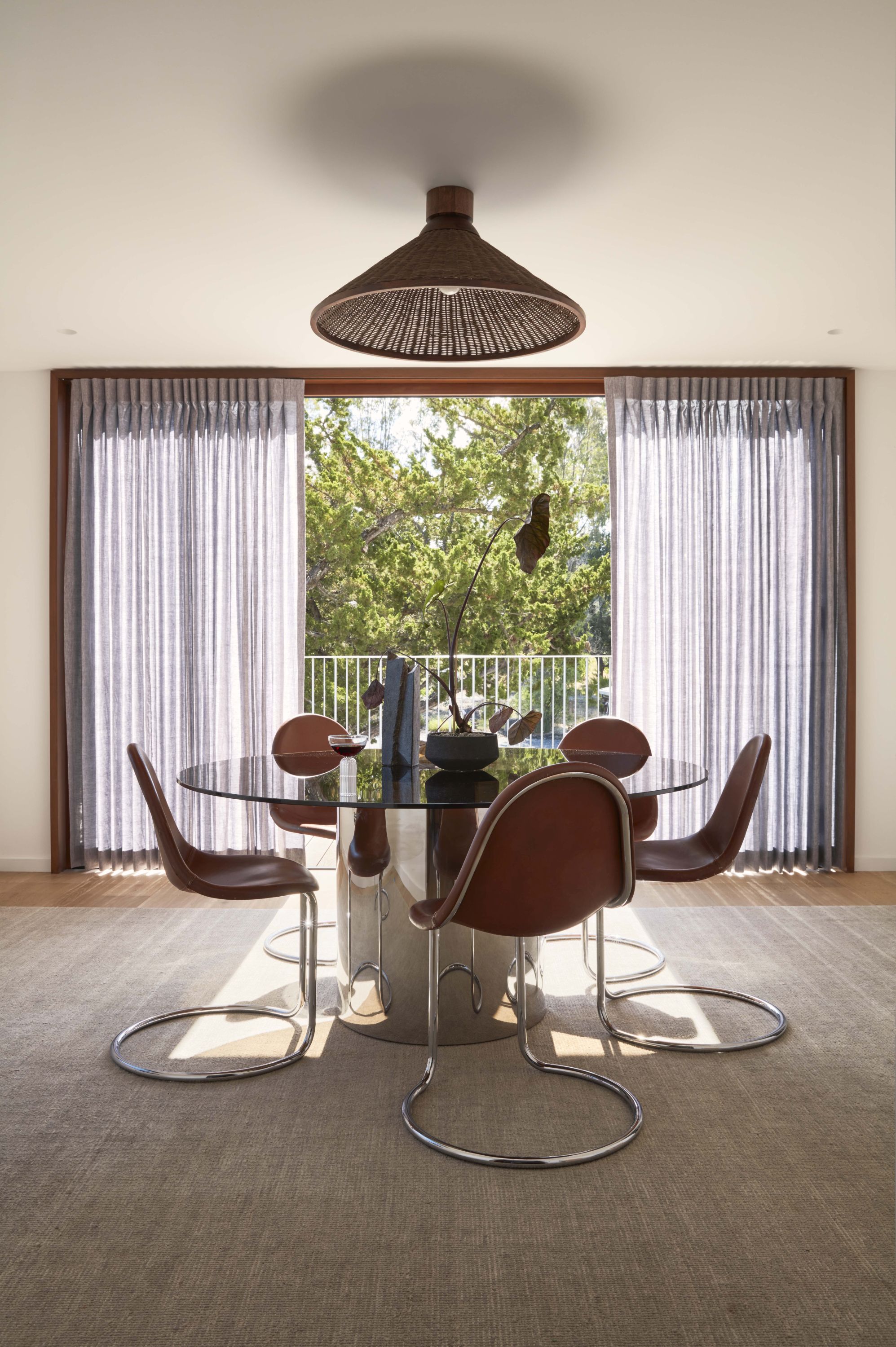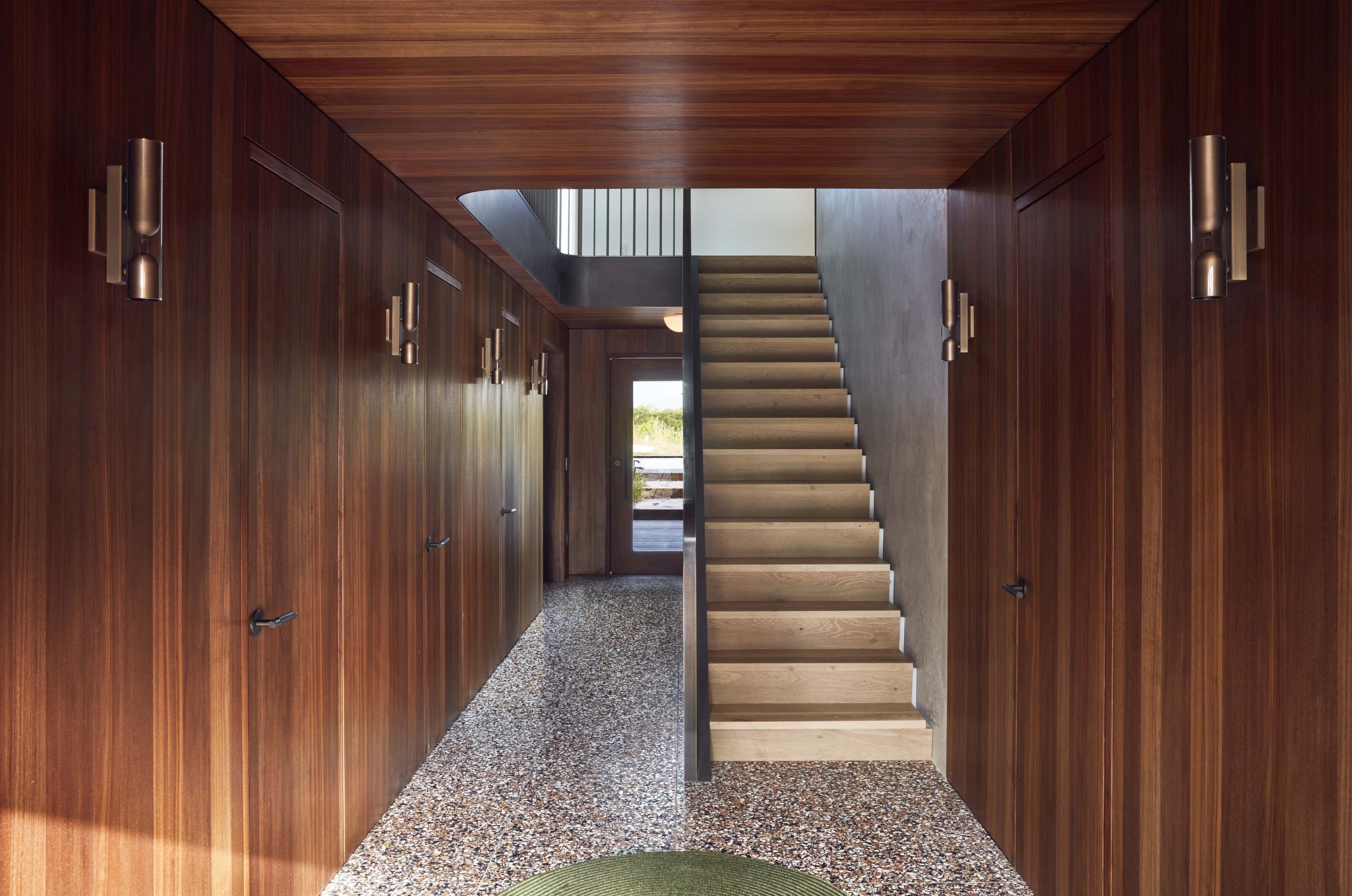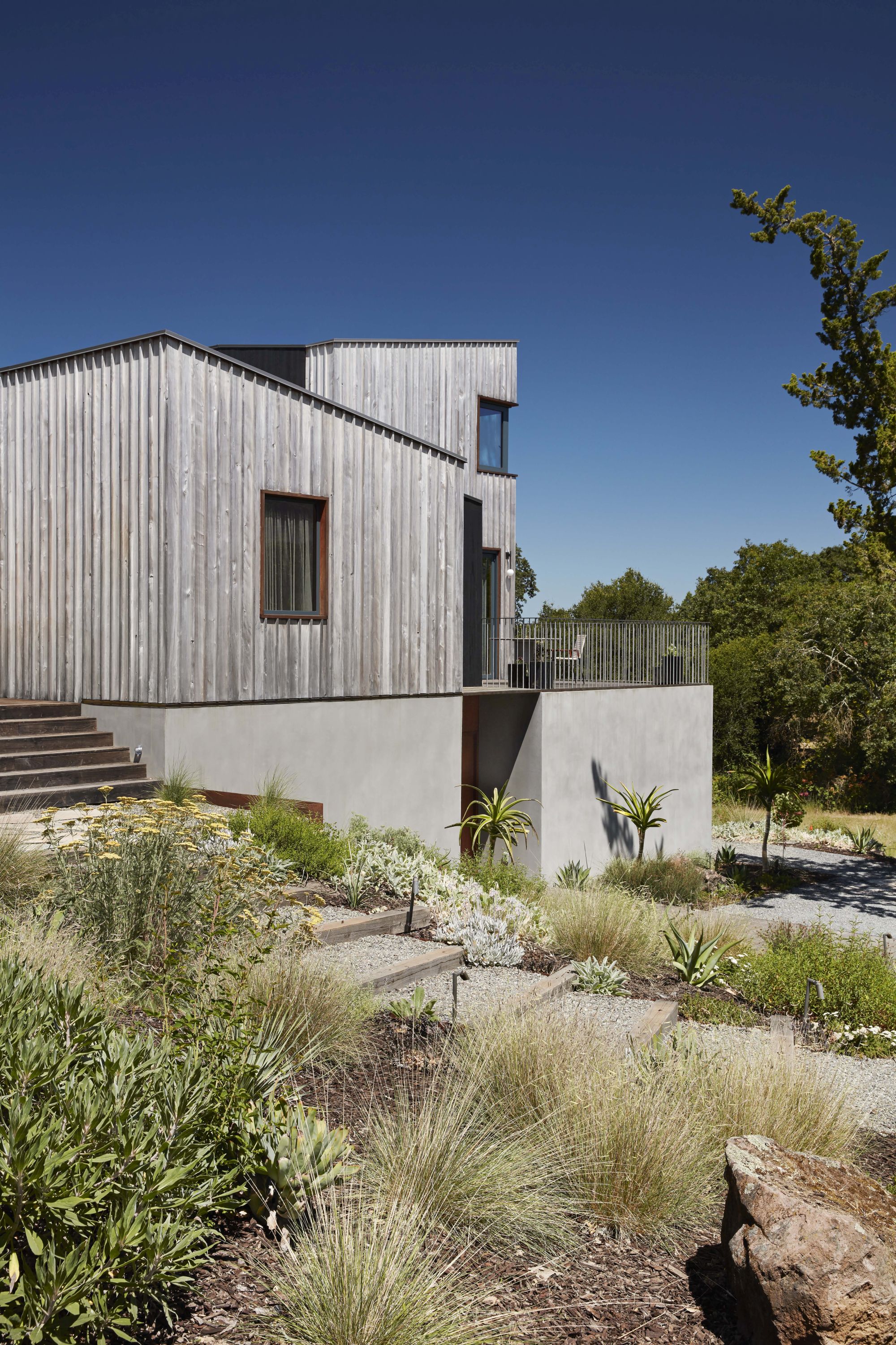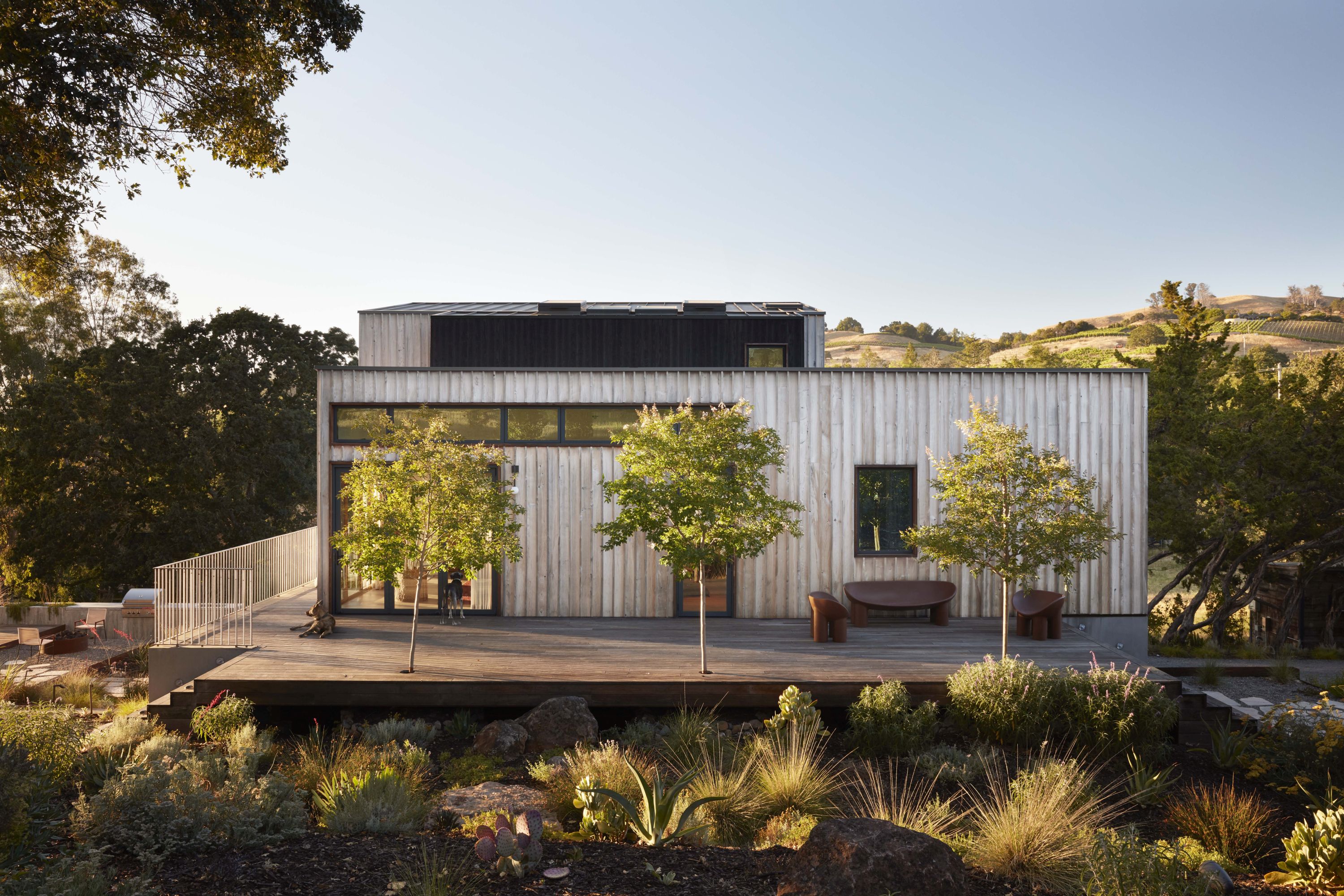 Set along a private, tree-lined road in the foothills of Healdsburg, this 3,800-square-foot residence is conceived as both a family home and an intimate tasting environment for its winemaker owners. Sculpted into the slope, the building is organized as two distinct volumes: a half-submerged, public-facing base - an earthy, cave-like level rendered in cement plaster and anchored directly into the hillside - and an upper private volume wrapped in reclaimed Monterey cypress, detailed with a custom board-and-batten cladding. A central triple-height circulation axis anchors the architecture, drawing the eye through the home toward the pool terrace, expansive decks, and the western horizon beyond. Wildfire-resistant assemblies, radiant heating, and passive cooling strategies reinforce a design ethos of restraint, authenticity, and material honesty, forging a quiet yet powerful connection to the surrounding vineyards and oak-studded landscape.