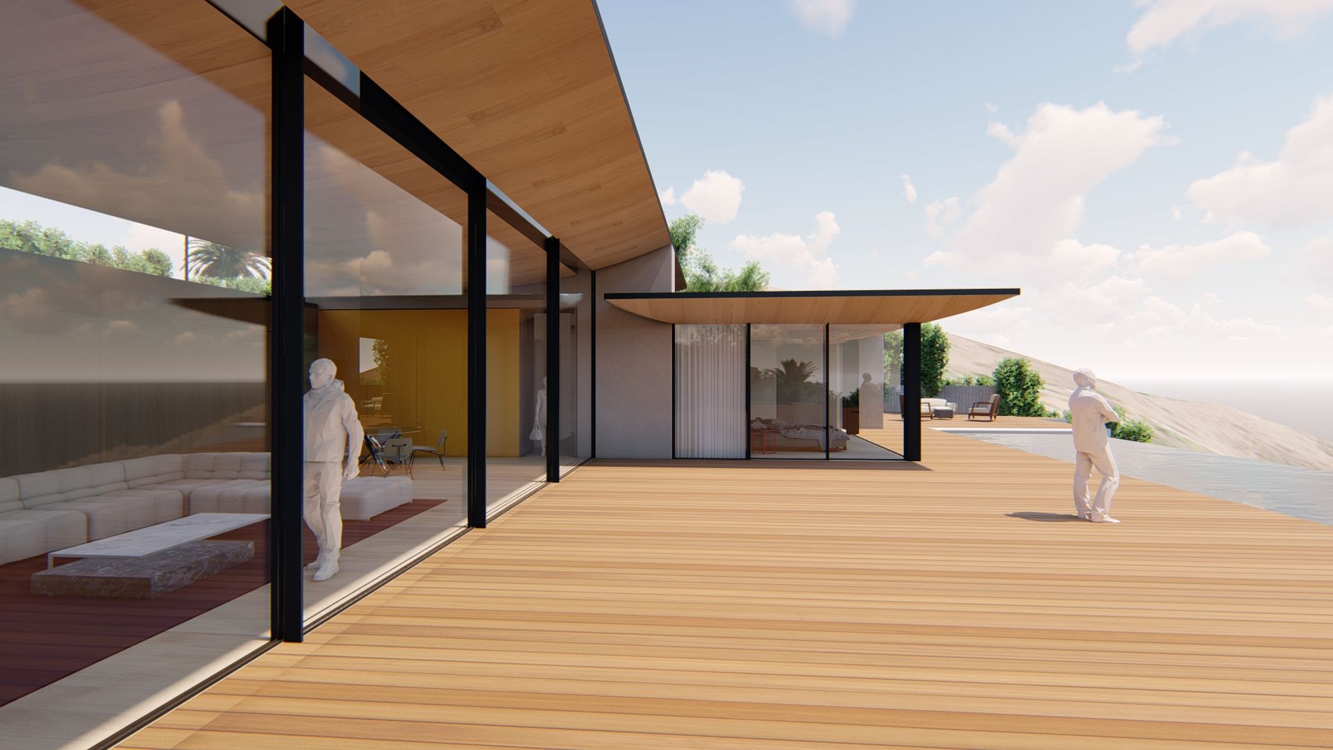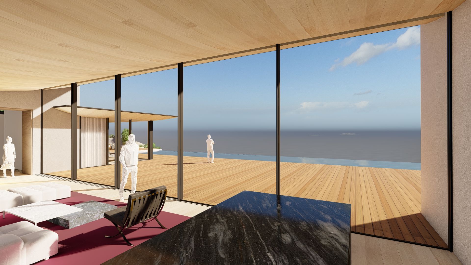 This project was sadly lost in the Palisades Fire. Perched high above Malibu’s Big Rock, the residence sat so elevated it often floated above the clouds, capturing dramatic, unobstructed ocean views. Its design centered on a 50-foot-wide, 15-foot-tall sliding glass wall that fully retracted to create a seamless indoor–outdoor connection to the infinity-edge pool and deck. A subtly curved ceiling concealed the structure and hid all door and window heads, giving the main living space an uninterrupted, horizon-focused openness. The design was a study in precision and pure California modernism.