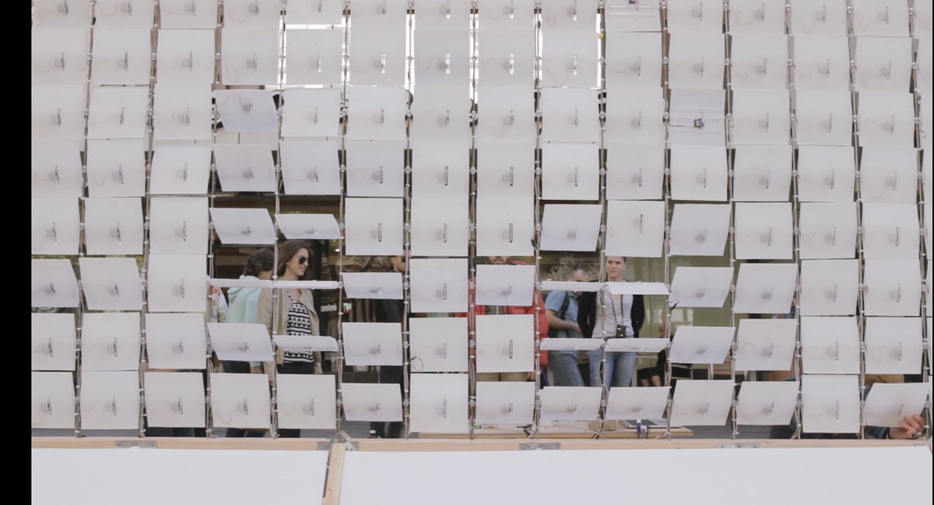 The Kinetic Wall is an interactive intervention that facilitates the serendipitous social interaction between pedestrians on Market Street.
